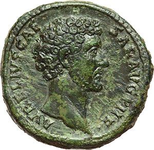 Roman Imperial. Marcus Aurelius as Caesar (139-161). Sestertius. Obv.: AVRELIVS CAESAR AVG PII F. Bare head right. Rev.: TR POT COS II SC. Minerva standing right, holding spear and shield. RIC 1248. AE. g. 27.33 mm. 32.00 Few light cleaning marks. About EF/BB+. Impero Romano. Marco Aurelio Cesare (139-161). Sesterzio. D/ AVRELIVS CAESAR AVG PII F. Testa nuda a destra. R/ TR POT COS II SC. Minerva stante a destra tiene lancia e scudo. RIC 1248. AE. g. 27.33 mm. 32.00 Pulito con grande perizia. qSPL/BB+.