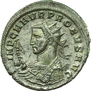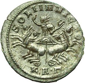Roman Imperial. Probus (276-282). Antoninianus, Serdica. Obv.: IMP C AVR PROBVS AVG. Radiate and manteled bust left, holding eagle-tipped sceptre. Rev.: SOLI INVICTO. Sol in facing spread quadriga. KA.G below. RIC 862. AE. g. 4.11 mm. 23.00 EF/About FDC. Impero Romano. Probo (276-282). Antoniniano, Serdica. D/ IMP C AVR PROBVS AVG. Busto radiato a sinistra, che indossa manto imperiale e tiene scettro sormontato da aquila. R/ SOLI INVICTO. Il Sole su quadriga di fronte. Sotto, KA.G. RIC 862. AE. g. 4.11 mm. 23.00 Impercettibile infrazione marginale in ore 8 del D/, altrimenti SPL/qFDC. Di qualità e stile eccellenti. Piena argentatura.