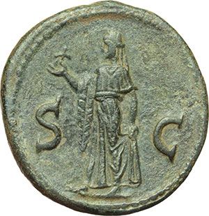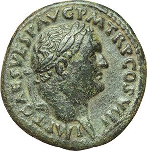 Roman Imperial. Titus (79-81). As, circa 80-81. Obv.: IMP T CAES VESP AVG PM TR P COS VIII. Laureate head right. Rev.: SC. Spes advancing left, holding flower. RIC 130. AE. g. 10.90 mm. 26.00 Good VF/VF+. Impero Romano. Tito (79-81). Asse, ca. 80-81. D/ IMP T CAES VESP AVG PM TR P COS VIII. Testa laureata a destra. R/ SC. Spes che incede a sinistra, tenendo un fiore nella mano destra. RIC 130. AE. g. 10.90 mm. 26.00 Bel BB/BB+.
