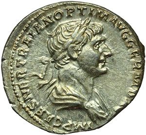 Roman Imperial. Trajan (98-117). Denarius, 114-117. Obv.: IMP CAES NER TRAIAN OPTIM AVG GERM DAC. Laureate and draped bust right. Rev.: PARTHICO P M TR P COS VI P P S P Q R. Felicitas standing facing, head left, holding caduceus and cornucopiae. RIC 332. C. 191. AG. g. 3.44 mm. 19.00 FDC. Impero Romano. Traiano (98-117). Denario, 114-117. D/ IMP CAES NER TRAIAN OPTIM AVG GERM DAC. Busto laureato e drappeggiato a destra. R/ PARTHICO P M TR P COS VI P P S P Q R. Felicitas stante di fronte, con il capo volto a sinistra, tiene caduceo e cornucopia. RIC 332. C. 191. AG. g. 3.44 mm. 19.00 FDC.