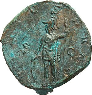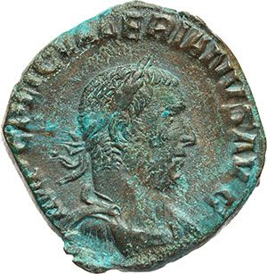 Roman Imperial. Valerian I (253-260). Sestertius. Obv.: IMP C P LIC VALERIANVS AVG. Laureate and cuirassed bust right. Rev.: VIRTVS AVGG SC. Virtus standing left, holding shield and spear. RIC 182. C. 269. AE. g. 22.33 mm. 29.00 About EF. Impero Romano. Valeriano I (253-260). Sesterzio. D/ IMP C P LIC VALERIANVS AVG. Busto laureato e corazzato a destra. R/ VIRTVS AVGG SC. Virtus, stante a sinistra, tiene scudo e lancia. RIC 182. C. 269. AE. g. 22.33 mm. 29.00 qSPL. Di grande qualità per il tipo. Patina cuoio con sfumature verdi.