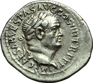 Roman Imperial. Vespasian (69-79). Denarius, Asia Minor. Obv.: IMP CAESAR VESPAS AVG COS IIII TR P PP. Laureated head right. Rev.: PACI ORB TERR AVG. Turreted and draped female bust right. T? below. RIC-. (cfr. 327 var. COS III). C-(cfr. 293 var. COS III, fr.20). AG. g. 3.57 mm. 19.00 RR. EF/About EF. Very rare. Impero Romano. Vespasiano (69-79). Denario, Asia Minore. D/ IMP CAESAR VESPAS AVG COS IIII TR P PP. Testa laureata a destra. R/ PACI ORB TERR AVG. Busto muliebre turrito e drappeggiato a destra. Sotto, contrassegno di zecca incerto: T?. RIC-. (cfr. 327 var. COS III). C-(cfr. 293 var. COS III, fr.20). AG. g. 3.57 mm. 19.00 RR. SPL/qSPL. Molto raro. Assente in RIC e Cohen con titolo COS IIII.