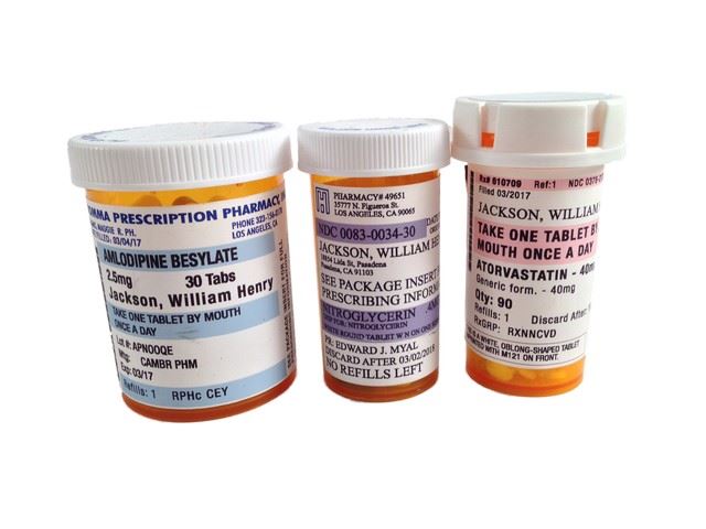George (Colin Farrell) screen used- shot in scene 5 (on the desk), prop pills in drawer, 3 bottles "Atorvastatin 40mg", "Nitroglycerin .4mg", "Amlodipine 2.5mg".(4x2)
