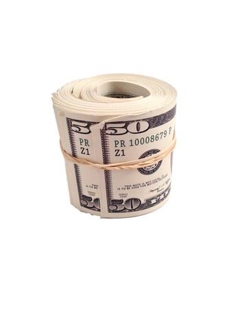 Roman's screen used, hero, roll of 50 dollar bills.(3x4)