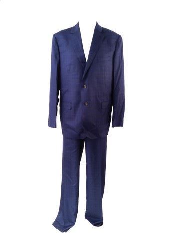 Roman's screen worn, hero, two piece blue and black plaid,"Max Davoli" suit. Wardrobe tag included.