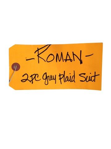 Roman's screen worn, hero, two piece blue and black plaid,"Max Davoli" suit. Wardrobe tag included.