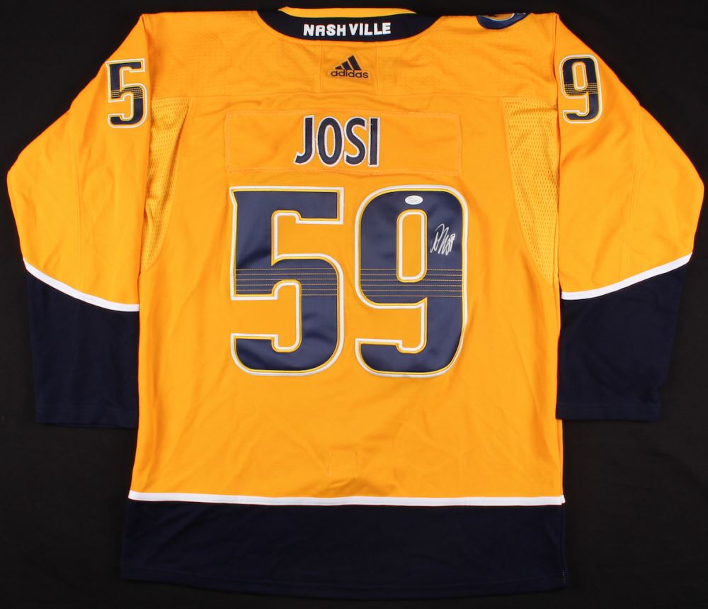 Adidas on-ice style jersey. Everything sewn on, size 54. Hand-signed in silver paint pen by Patrik Laine.