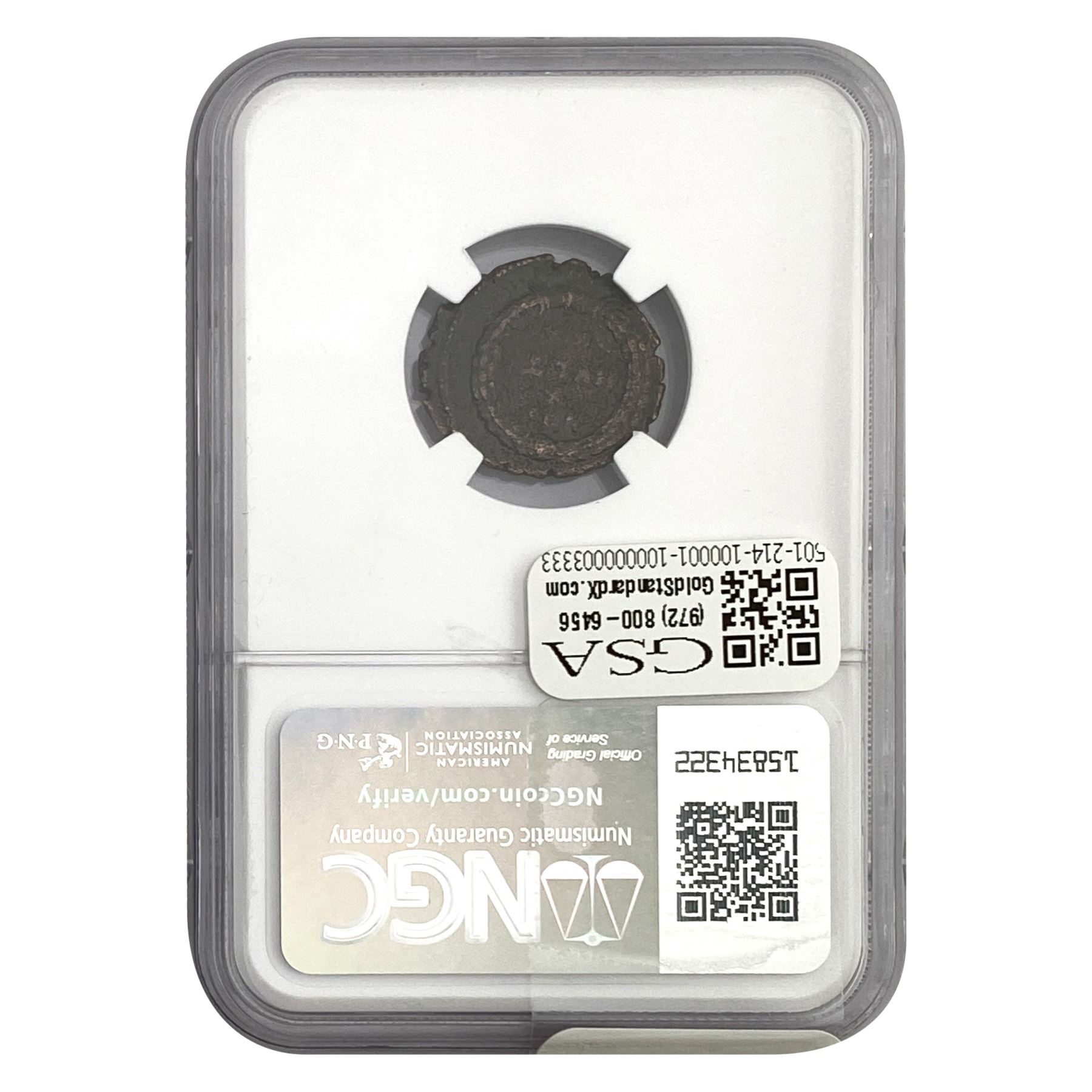 e. Coins sold referencing a third-party grading service are sold “AS IS” without any express or implied warranty, except for a guarantee by GSA that they are genuine. Removal or alteration of the holder, voids all of Bidder’s claims concerning that Product. Certain warranties may be available from the grading services and Bidders are referred to them for further details: Numismatic Guaranty Corporation (NGC), PO Box 4776, Sarasota, FL 34230, www.ngccoin.com/services/writtenguarantee.asp; Professional Coin Grading Services (PCGS), PO Box 9458, Newport Beach, CA 92658, www.pcgs.com/guarantee.html; ANACS, 6555 S. Kenton St., Ste. 303, Englewood, CO 80111; and Independent Coin Grading Co. (ICG), 7901 East Bellview, Ave., Suite 50, Englewood, CO 80111.