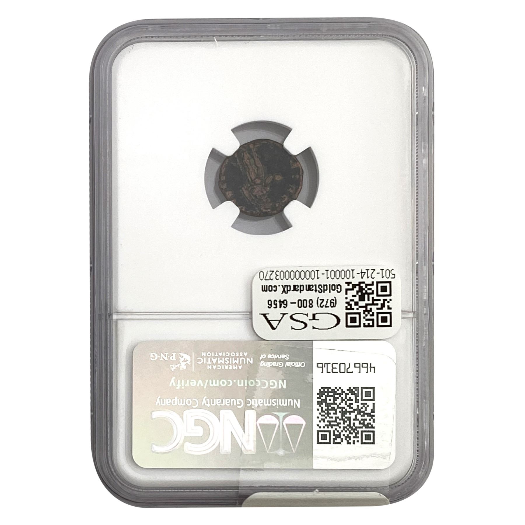 e. Coins sold referencing a third-party grading service are sold “AS IS” without any express or implied warranty, except for a guarantee by GSA that they are genuine. Removal or alteration of the holder, voids all of Bidder’s claims concerning that Product. Certain warranties may be available from the grading services and Bidders are referred to them for further details: Numismatic Guaranty Corporation (NGC), PO Box 4776, Sarasota, FL 34230, www.ngccoin.com/services/writtenguarantee.asp; Professional Coin Grading Services (PCGS), PO Box 9458, Newport Beach, CA 92658, www.pcgs.com/guarantee.html; ANACS, 6555 S. Kenton St., Ste. 303, Englewood, CO 80111; and Independent Coin Grading Co. (ICG), 7901 East Bellview, Ave., Suite 50, Englewood, CO 80111.