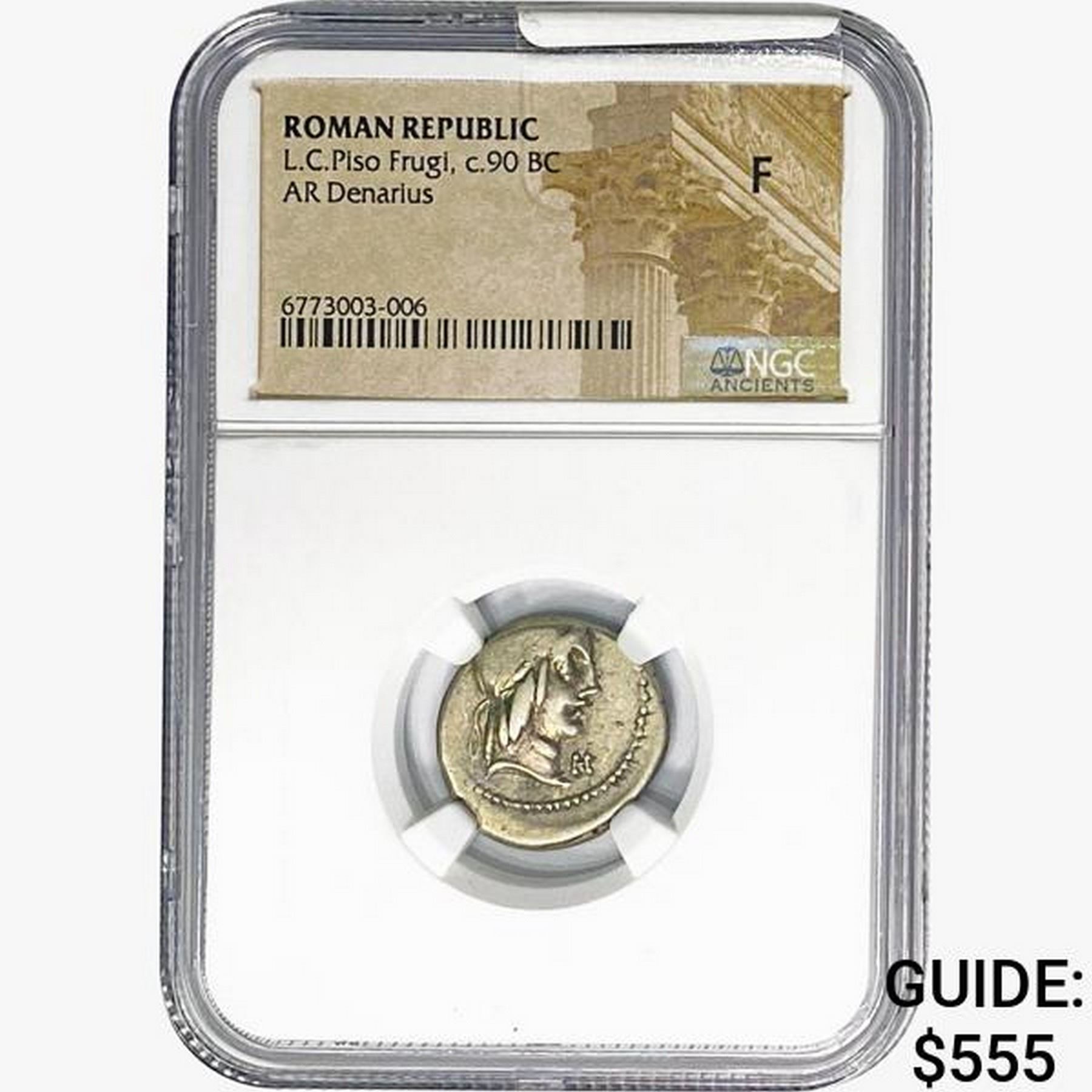 Roman L.C. Piso Frugi, c.90 BC AR Denarius