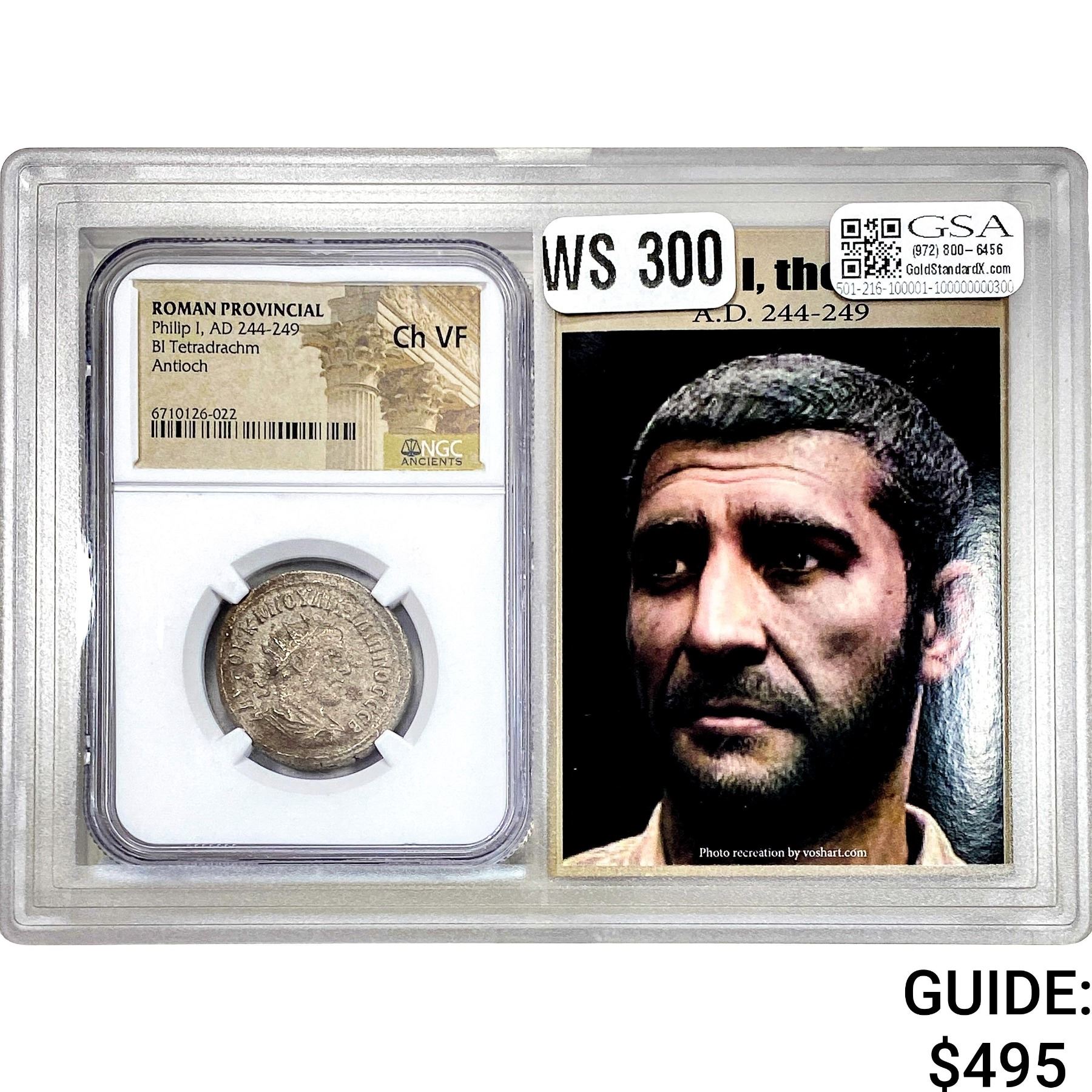 Roman Philip I, AD 244-249 BI Tetradrachm NGC Ch VF