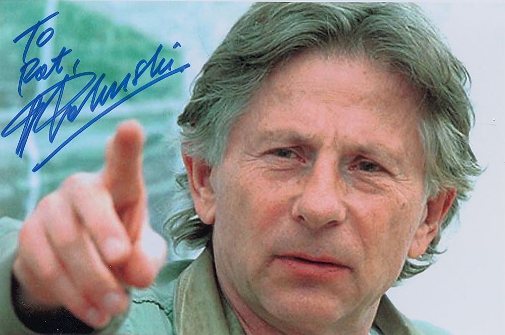Color glossy 7.5 x 5 close-up photo of Polanski giving directions, signed and inscribed in blue felt tip, “To Pat, Roman Polanski.” In very fine condition.