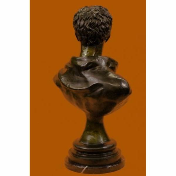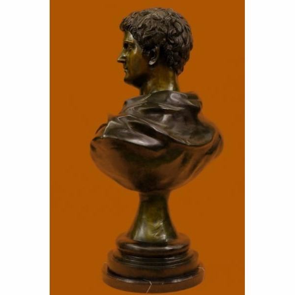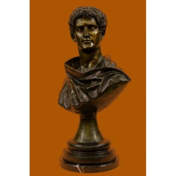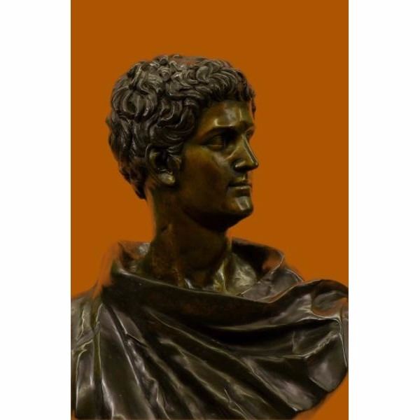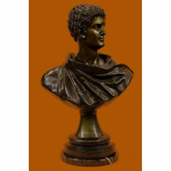 The Roman politician and general Mark Antony (8330 B.C.) was an ally of Julius Caesar and the main rival of his successor Octavian (later Augustus). With those two men he was integral to Rome’s transition from republic to empire. His romantic and political alliance with the Egyptian queen Cleopatra was his ultimate undoing, and centuries later provided inspiration for artists from Shakespeare to Cecil B. DeMille. Condition: This sculpture is in perfect condition. Bronze Dimensions with Marble Base:Height 38" x Width 28" Marble Dimensions: Diameter 15" Height without base: 37" Weight : 85 LBS Inventory: 27-94228460 72