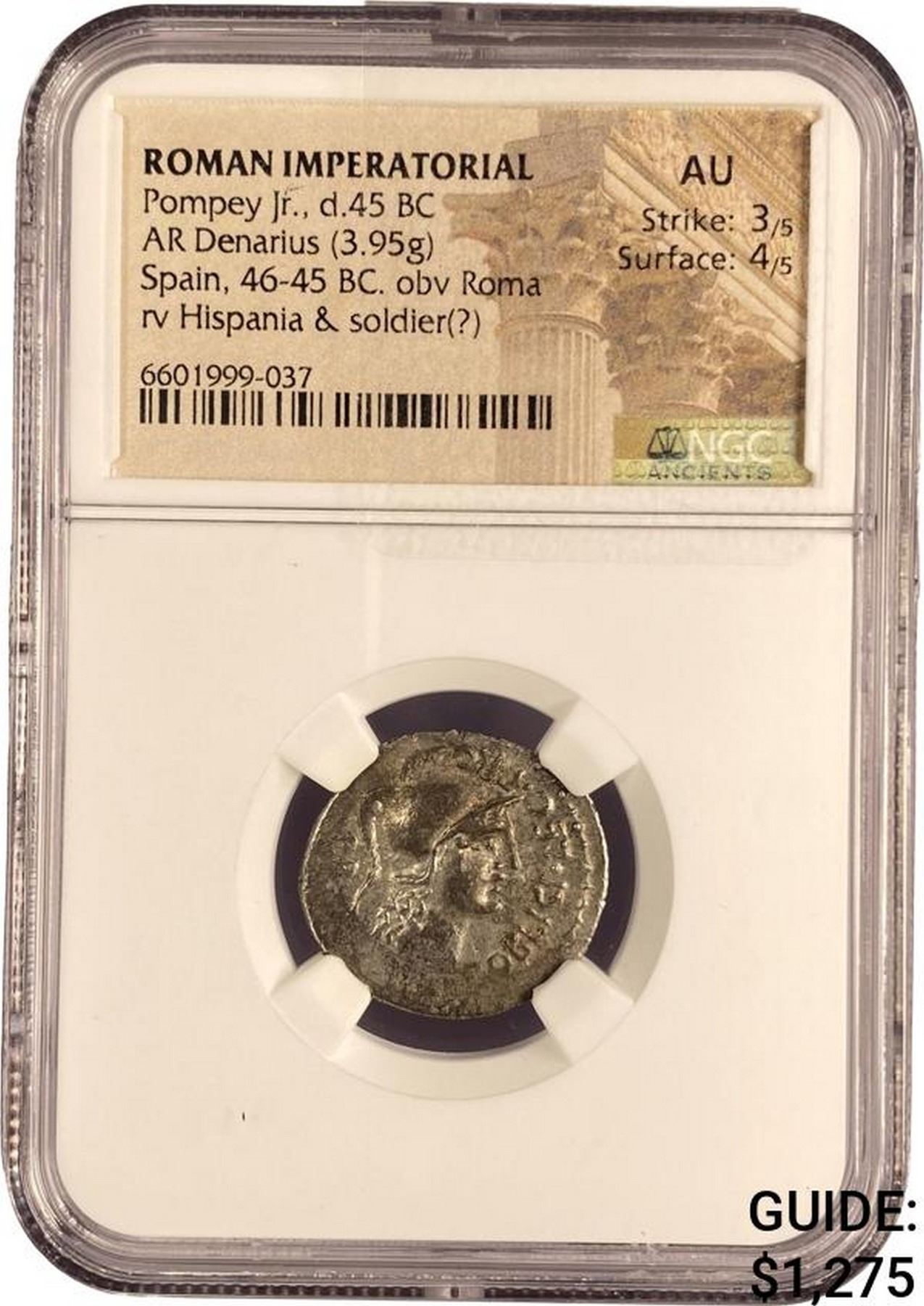 Roman Pompey Jr, BC 46-45 SIlver Denarius NGC