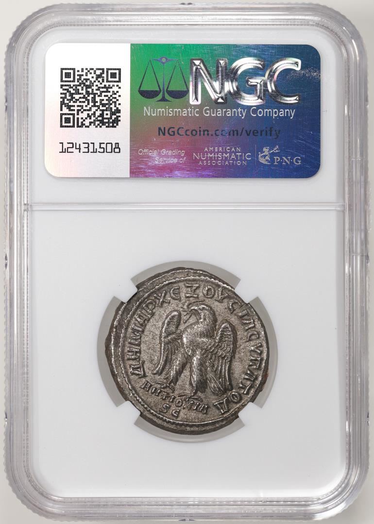One Roman Provicinial 247-249 AD Philip II Bi Tetradrachm Ancient Coin NGC AU. NGC Certified.