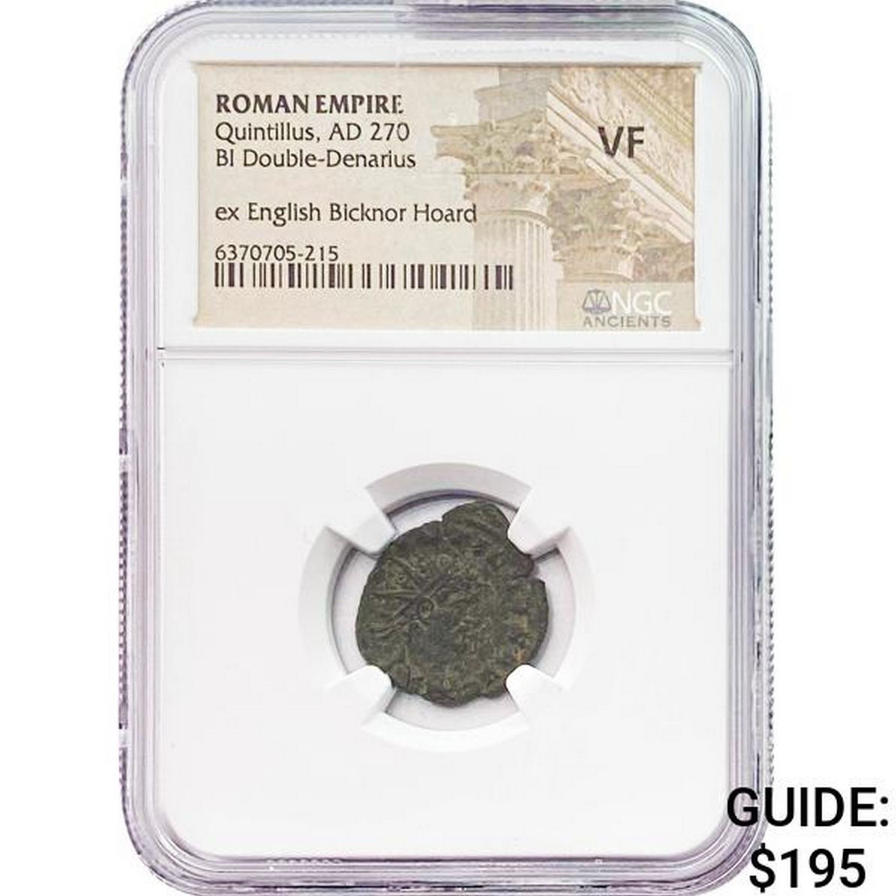 Roman Quintillus AD 270 BI Double Denarius NGC VF