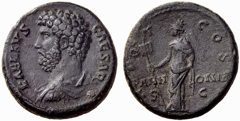 The Roman Republic. Aelius caesar, 136–138. As 137, Æ 13.00g. Bare-headed, draped and cuirassed bust l. Rev. Pannonia, turreted and draped, standing l., holding vexillum with r. hand and raising skirt with l. C 33. BMC Hadrian 1937. RIC Hadrian 1073. Rare. Green patina, good very fine
