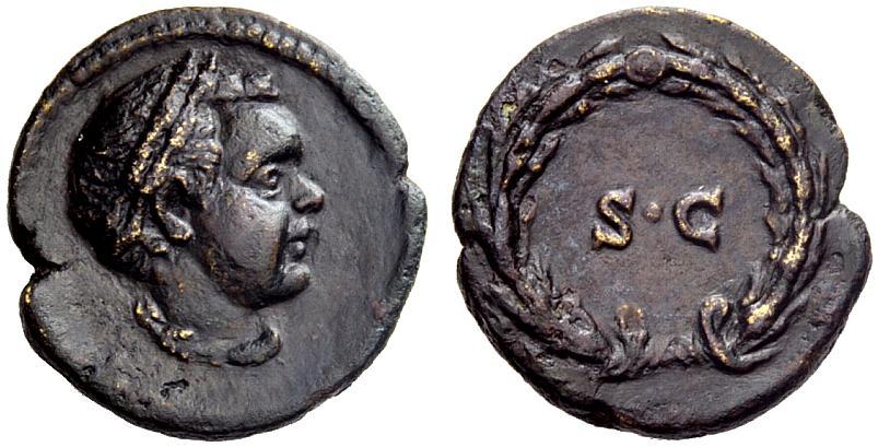 The Roman Republic. Anonymous issues, time of the Antoninii. Semis 138-180, Æ 3.58 g Head of child r., personification of summer, wearing wreath of corn ears. Rev. S C within wreath. Van Heesch 1 pl. XXV, 7. Gently tooled dark tone, otherwise good very fine
