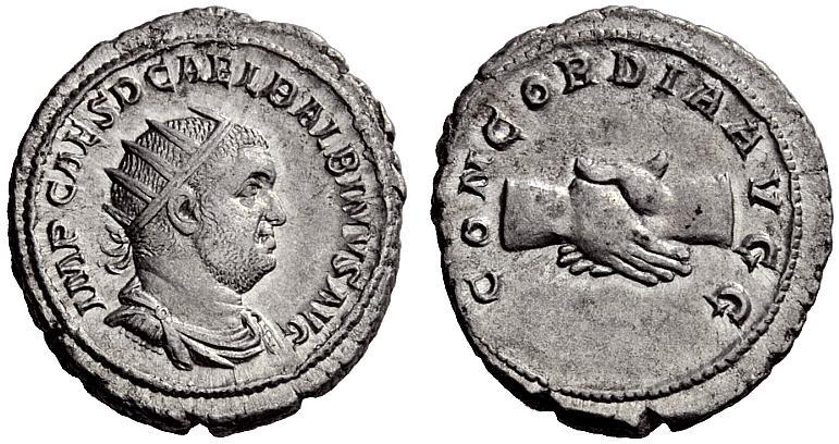 The Roman Republic. Balbinus, 22nd Apr-29th Jul 238. Antoninianus April-June 238, AR 5.27g. Radiate, draped and cuirassed bust r. Rev. Clasping hands. C 17. BMC 74. RIC 12. About extremely fine