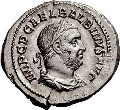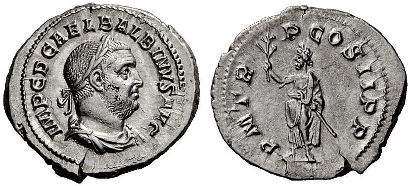 The Roman Republic. Balbinus, 22nd Apr-29th Jul 238. Denarius April-June 238, AR 2.97 g Laureate, draped and cuirassed bust r. Rev. Balbinus togate, standing front, head l., holding branch and short sceptre. C 20. BMC 26. RIC 5. Good very fine