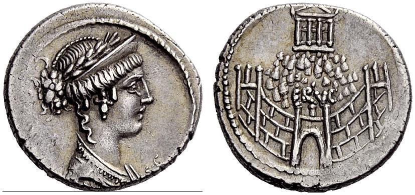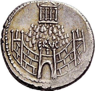 The Roman Republic. C. Considius Nonianus. Denarius 57, AR 3.78g. C·[CONSIDI·NONIANI] Diademed and laureate bust of Venus r.; below chin, S·C. Rev. ERVC above gate in wall surrounding mountain on which stands temple. Babelon Considia 1. Sydenham 887. Crawford 424/1. Rare and in exceptional condition for the issue. Lightly toned, insignificant area of weakness on obverse, otherwise extremely fine