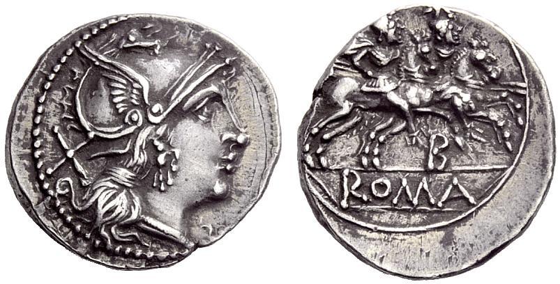 The Roman Republic. Denarius, Etruria (?) ca. 211-208, AR 4.45g. Helmeted head of Roma r.; behind, X. Rev. The Dioscuri galloping r.; below horses, B and ROMA in linear frame. Sydenham 204. Crawford 104/1a. Very rare. Toned and extremely fine. Ex NAC sale 29, 2005, 283.
