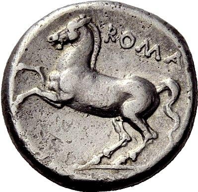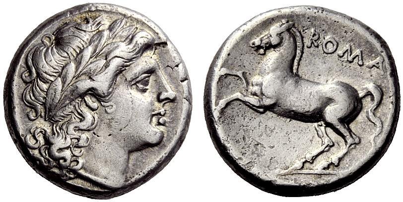 The Roman Republic, Didrachm ca. 234-231, AR 6.65 g. Laureate head of Apollo r. Rev. ROMA Horse prancing l. Sydenham 27. Crawford 26/1. Historia Numorum Italy 306. Good very fine