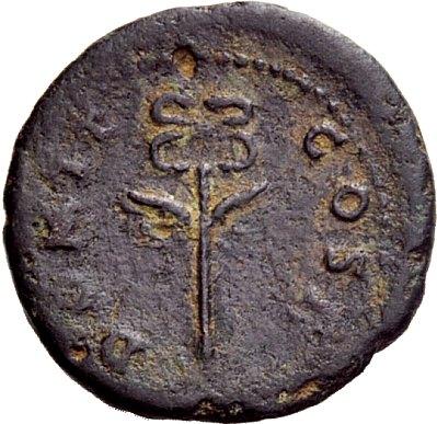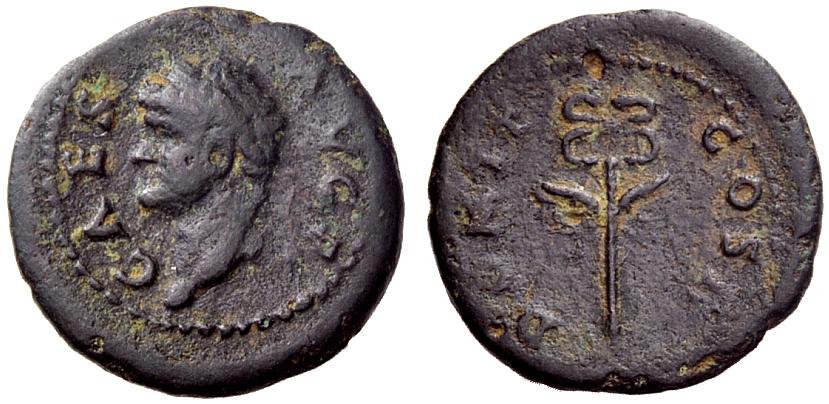The Roman Republic. Domitian caesar, 69–81. Quadrans Syria (?) 74, Æ 2.90g. Laureate head l. Rev. Winged caduceus. C 96. BMC Vespasian 885. RIC Vespasian 1581. RPC 2005. About very fine