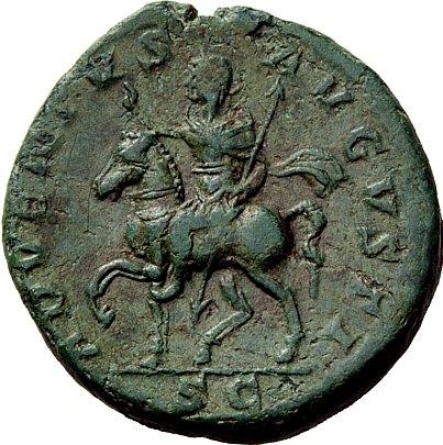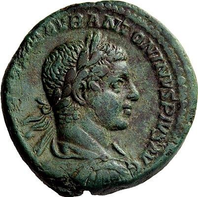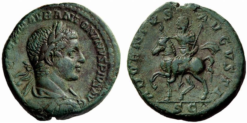 The Roman Republic. Elagabalus, 218–222. As 218-222, Æ 10.00g. Laureate, draped and cuirassed bust r. Rev. Emperor on horse l., raising r. hand and holding sceptre. C 7. BMC 365. RIC 341 A pleasant light green patina and good very fine