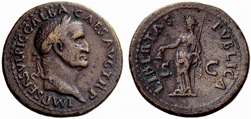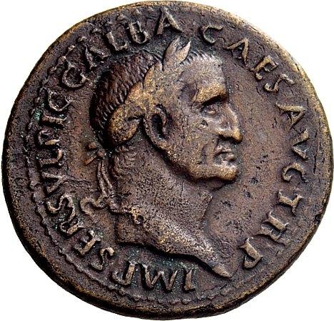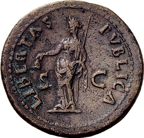 The Roman Republic. Galba, 68–69. As late summer 68, Æ 10.90g. Laureate head r. Rev. Libertas standing l., holding pileus and vertical rod. C -. BMC -. RIC–cf. 318 (dupondius). CBN 158 var. Reddish tone and very fine