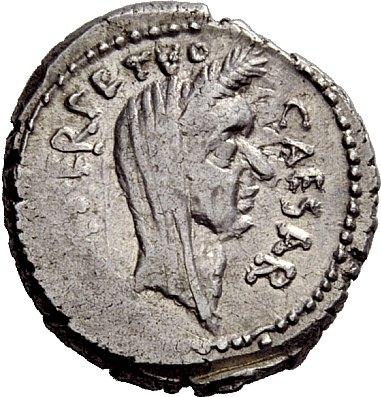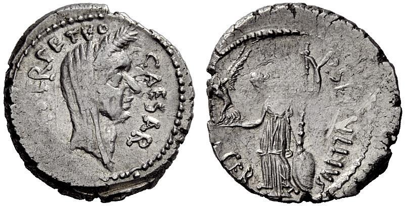 The Roman Republic. Julius Caesar and P. Sepullius Macer. Denarius 44, AR 3.79g. Wreathed head of Caesar r. Rev. Venus standing l., holding Victory and sceptre. Babelon Julia 48 and Sepullia 3. C 38. Sydenham 1073. Sear Imperators 107a. Crawford 480/10. A minor area of weakness, otherwise about extremely fine