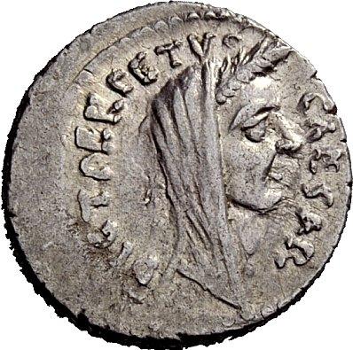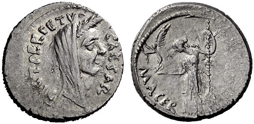 The Roman Republic. Julius Caesar and P. Sepullius Macer. Denarius 44, AR 4.15g. Wreathed head of Caesar r. Rev. Venus standing l., holding Victory and sceptre. Babelon Julia 48 and Sepullia 3. C 38. Sydenham 1073. Sear Imperators 107a. Crawford 480/10. About extremely fine / extremely fine