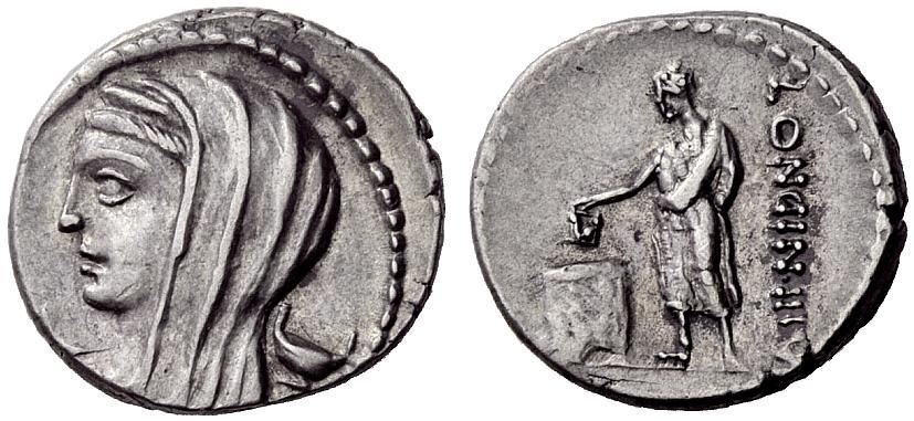 The Roman Republic. L. Cassius Longinus. Denarius 63, AR 3.93g. Diademed and veiled head of Vesta l.; below chin, C. In r. field, dish. Rev. Voter standing l., dropping tablet into cista. Babelon Cassia 10. Sydenham 935. Crawford 413/1. Toned and extremely fine