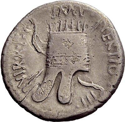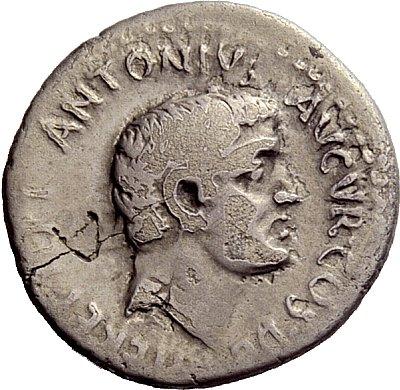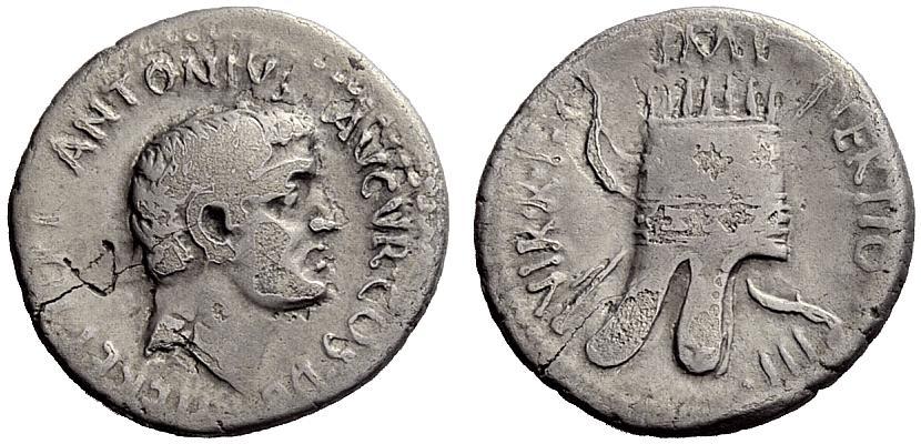The Roman Republic. M. Antonius. Denarius, mint moving with M. Antonius 36, AR 3.58g. Head of M. Antonius r. Rev. Armenian tiara, behind bow and arrow. Babelon Antonia 94. C 19. Sydenham 1205. Sear Imperators 345. Crawford 539/1. Rare. Countermark on obverse field, fine