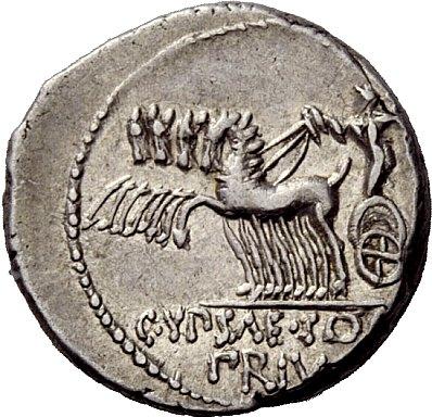 The Roman Republic. M. Plautius Hypsaeus. Denarius ca. 60, AR 3.96g. Draped and diademed bust of Leuconoe r.; behind, dolphin swimming downwards. Rev. Jupiter in quadriga l., holding reins and hurling thunderbolt. Babelon Plautia 12. Sydenham 911. Crawford 420/2a. Good very fine / about extremely fine
