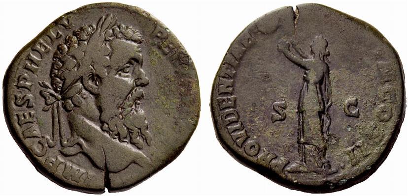 The Roman Republic. Pertinax, January 1st–March 28th 193. Sestertius 1st January-March 28th 193, Æ 28.02g. Laureate head r. Rev. Providentia standing l., raising r. hand to a large star in upper l. field and resting l. hand by breast. C 49. BMC 28 note. RIC 21. Green patina, about very fine