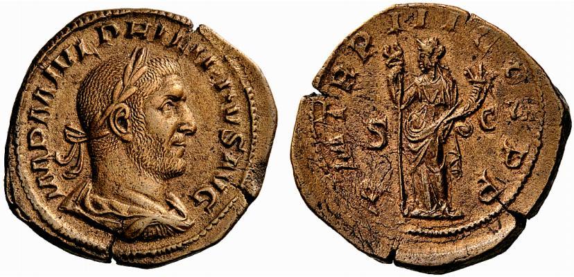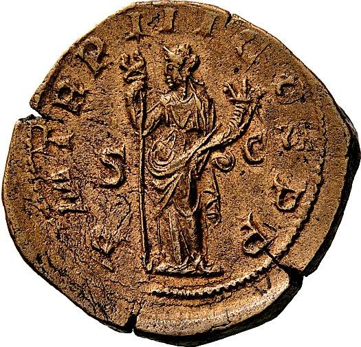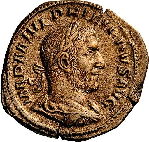 The Roman Republic. Philip I, 244–249. Sestertius 246, Æ 23.00g. Laureate, draped and cuirassed bust r. Rev. Felicitas standing l., holding caduceus and cornucopiae. C 125. RIC 149 (misdescribed). Tiber tone about extremely fine