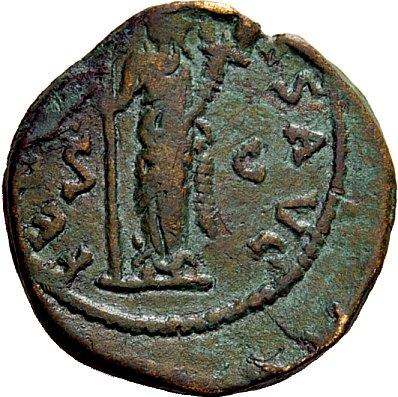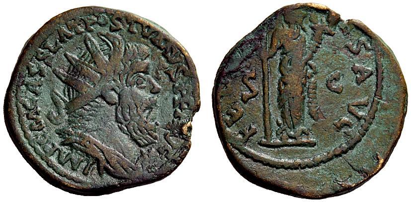 The Roman Republic. Postumus, 260–269. As, Colonia 2nd half 260, Æ 5.52g. Radiate and draped bust r. Rev. Felicitas standing front, head l., holding sceptre and cornucopiae. C 40. RIC 193 (Lugdunum). Bastien 337. Green patina, very fine