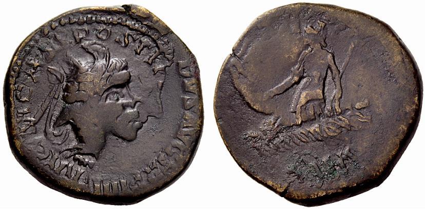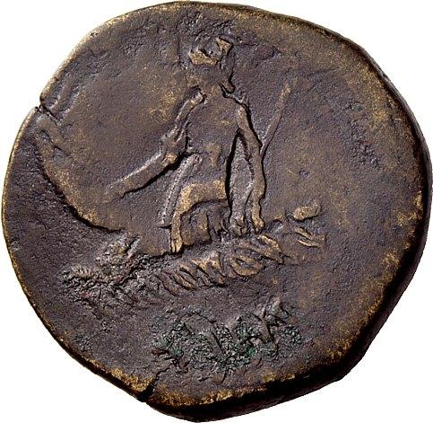 The Roman Republic. Postumus, 260–269. Sestertius, Colonia 261, Æ 20.52g. Radiate draped and cuirassed bust r. Rev. Galley l. C 176. RIC 146. Bastien 87 ff. Evident traces of over-striking on a sestertius of Commodus. Fine