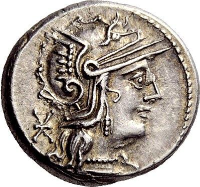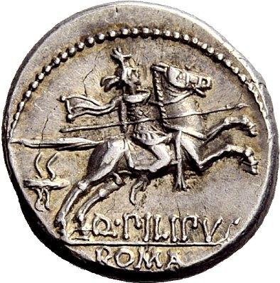 The Roman Republic. Q. Marcius Pilipus. Denarius 129, AR 3.90g. Helmeted of Roma r., with star on neck-guard; behind, Û. Rev. Horseman galloping r., wearing crested helmet, holding spear in r. hand; below horse, Q·PILIPVS. In l. field, helmet with goat horns; in exergue, ROMA. Babelon Marcia 11. Sydenham 477. Crawford 259/1. Good extremely fine. Ex NAC sale 27, 2004, 226.