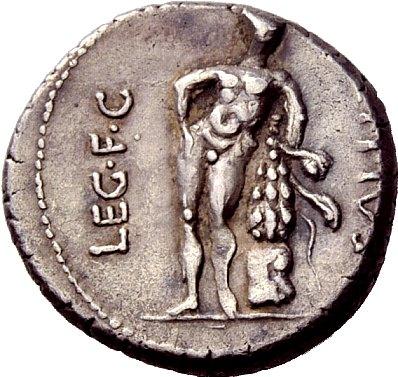 The Roman Republic. Q. Metellus Scipio and Eppius Legatus. Denarius, Africa 47-46, AR 3.91g. Laureate head of Africa r., wearing elephant's skin; in field r., corn ear and below, plough. Rev. Hercules standing facing with r. hand on hip and resting l. on club draped with a lion skin. Babelon Caecilia 50 and Eppia 1. Sydenham 1051. Sear Imperators 44. Crawford 461/1. Nicely toned and good very fine