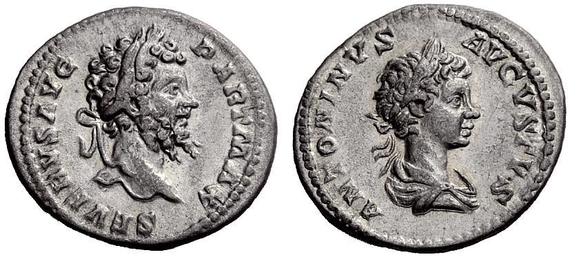 The Roman Republic. Septimius Severus, 193–211. Denarius 200-201, AR 2.90g. Laureate head of S. Severus r. Rev. Laureate and draped bust of Caracalla r. C 2. BMC 187. RIC 157. Rare. About extremely fine. Ex NAC sale 51, 2009, 350.