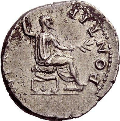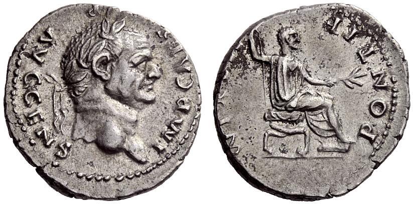 The Roman Republic. Vespasian, 69–79. Denarius 73, AR 3.52g. Laureate head r. Rev. Vespasian seated r. on curule chair, holding sceptre and branch. C 387. BMC 98. RIC 546. Lightly toned and good very fine