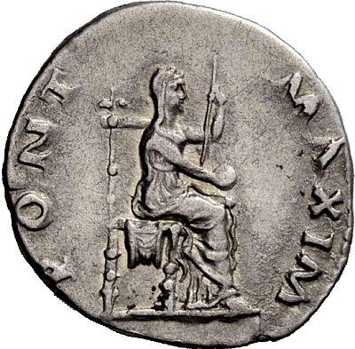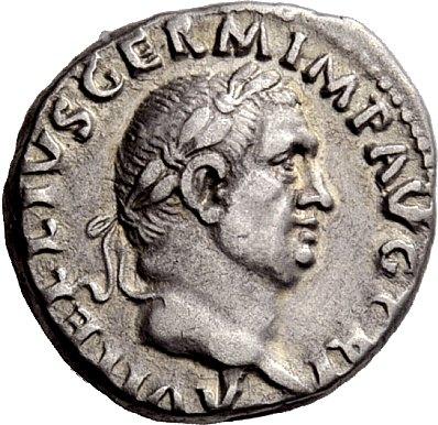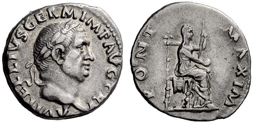 The Roman Republic. Vitellius, April–December 69. Denarius late April-December 69, AR 3.37g. Laureate head r. Rev. Vesta seated r. on throne holding patera and vertical sceptre. C 72. BMC 34. RIC 107. Good very fine