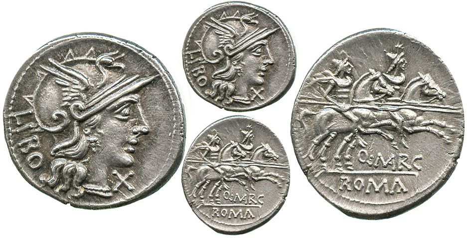 Roman Republic, AR denarius, Q. Marcius Libo, 148 BC, Rome mint.