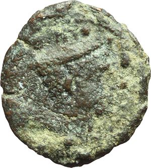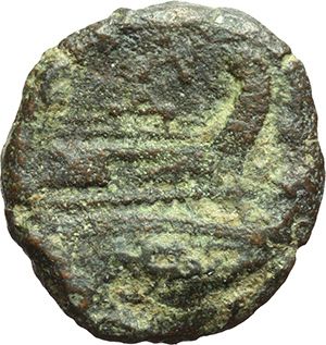 Roman Republican. 'AN or AV' series. Sextans, ca 194-190. Obv.: Head of Mercury right; above two pellets. Rev.: Prow right; above AV, and before two pellets. Below, ROMA. B. Aurelia 6. Syd. 327d. Cr. 136/6. AE. g. 5.09 mm. 18.50 RR. About VF. Extremely rare. Repubblica Romana. Serie 'AN o AV'. Sestante, ca 194-190. D/ Testa di Mercurio a destra, sopra due globetti. R/ Prua a destra; sopra AV, davanti due globetti. Sotto, ROMA. B. Aurelia 6. Syd. 327d. Cr. 136/6. AE. g. 5.09 mm. 18.50 RR. qBB. Estremamente raro.