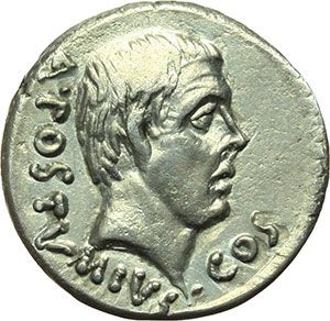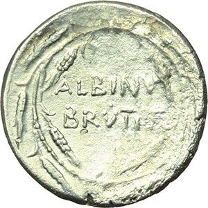 Roman Republican. Albinus Bruti f. Denarius, 48 B.C. Obv.: A. POSTVMIVS COS. Bare head of consul Aulus Postumius Albinus right. Rev.: ALBINV/BRVTI F within wreath. Cr.450/3b. B.(Postumia)14. AG. g. 3.87 mm. 17.00 R. EF/About EF. Repubblica Romana. Albinus Bruti f. Denario, 48 a.C. D/ A. POSTVMIVS COS. Testa nuda del console Aulus Postumius Albinus a destra. R/ ALBINV/BRVTI F. entro corona. Cr.450/3b. B.(Postumia)14. AG. g. 3.87 mm. 17.00 R. SPL/qSPL.