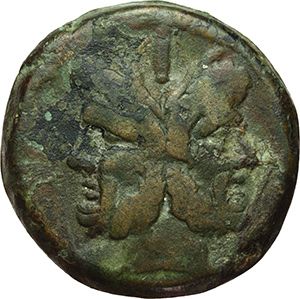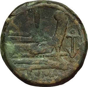 Roman Republican. 'Anchor' series. As, ca 209-208. Obv.: Laureate head of Janus; above mark of value I. Rev.: Prow right; above mark of value and before anchor. Below, ROMA. Syd. 145. Cr. 50/3. AE. g. 38.99 mm. 33.20 Good VF. Repubblica Romana. Serie 'ancora'. Asse, ca 209-208. D/ Testa di Giano laureata; sopra segno di valore I. R/ Prua a destra; sopra segno di valore I, davanti ancora. Sotto; ROMA. Syd. 145. Cr. 50/3. AE. g. 38.99 mm. 33.20 BB+.
