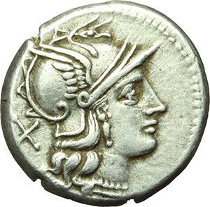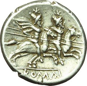 Roman Republican. Anonymous. Denarius, after 211 BC. Obv.: Head of Roma right. X behind. Rev.: The Dioscuri on horseback riding right. ROMA below. Cr.53/2. AG. g. 4.09 mm. 18.50 About EF. Repubblica Romana. Serie anonima. Denario, dopo il 211 a.C. D/ Testa di Roma a destra. Dietro, X. R/ I Dioscuri al galoppo a destra. Sotto, ROMA. Cr.53/2. AG. g. 4.09 mm. 18.50 qSPL.