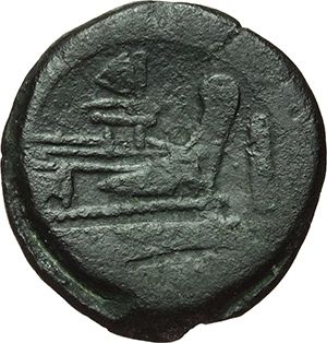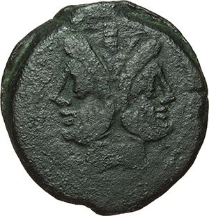 Roman Republican. 'Butterfly and vine branch' series. As, ca 169-158. Obv.: Laureate head of Janus, above mark of value I. Rev.: Prow right; above butterfly, before mark of value. Below, ROMA. Syd. 295. Cr. 184/1b. AE. g. 29.78 mm. 32.00 Good VF. Repubblica Romana. Serie 'Farfalla e ramo di vite'. Asse,ca 169-158. D/ Testa di Giano laureata, sopra segno di valore I. R/ Prua a destra; sopra farfalla, davanti segno di valore. Sotto, ROMA. Syd. 295. Cr. 184/1b. AE. g. 29.78 mm. 32.00 BB+.